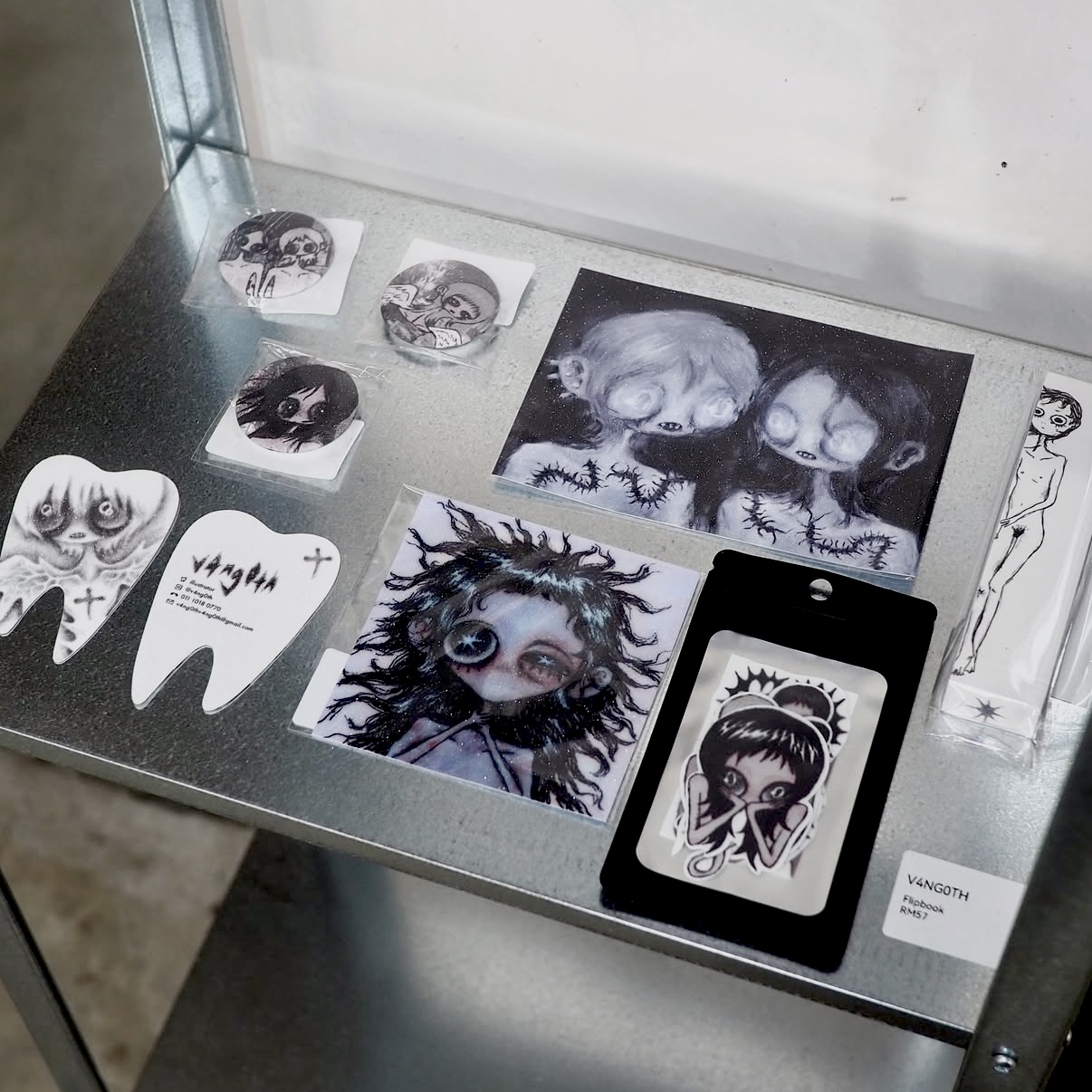Merchandise: Clothings (tank tops, tshirts, long sleeves), live drawing (will be drawing customers and making them into keychains on the spot), plushies, stickers, prints, accessories (necklaces, rings, keychains)