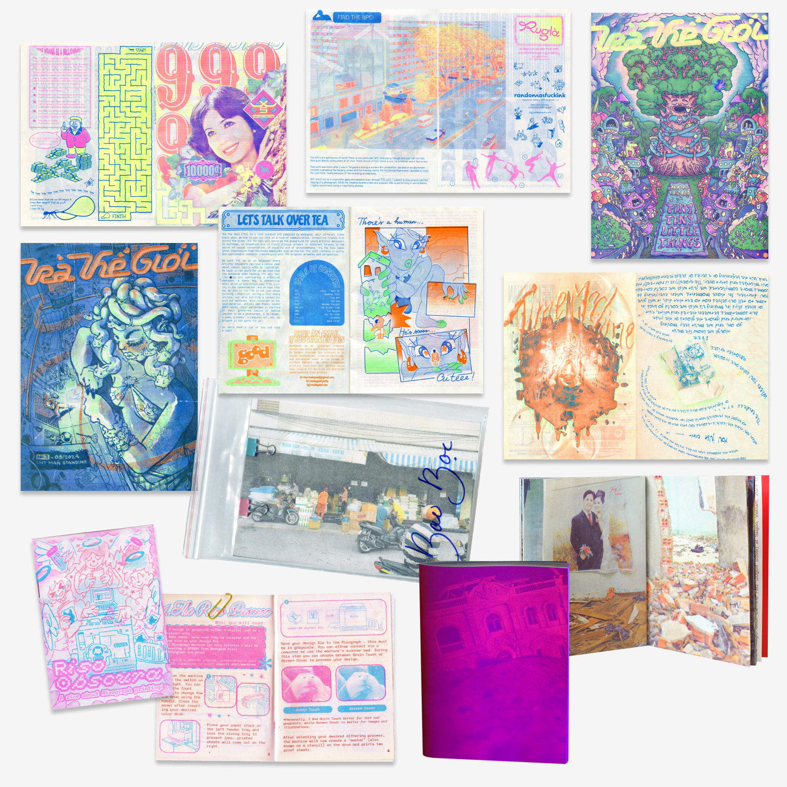 Wedogood is a Risograph creative studio and indie print making house in Saigon, Vietnam. Our interest is in visual exploration, creative narrative, and outlandish humor in the format of printed matters. We offer risograph printing solutions and service while also looking for exciting collaboration opportunities from artists.